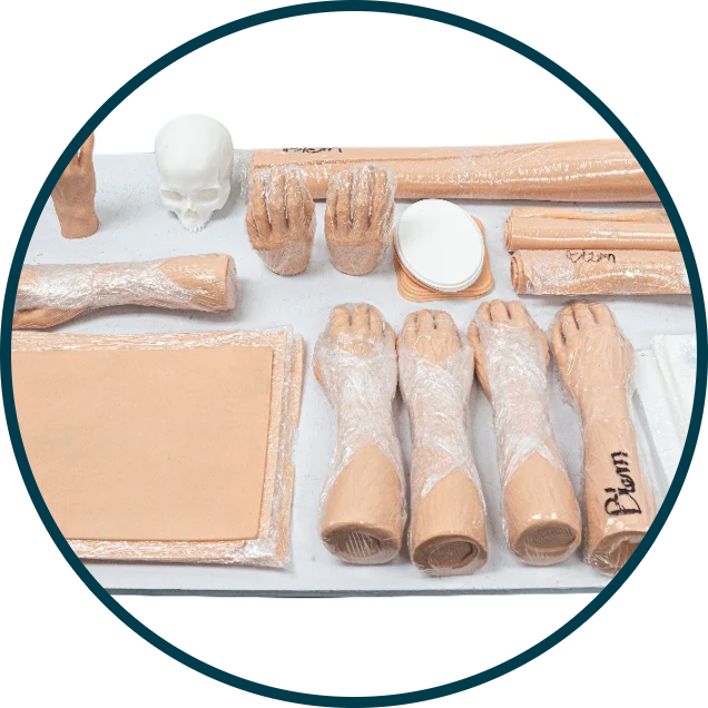 Synthetic tattooable skin, shaped like realistic limbs. It is our mission to create an experience closest to tattooing real skin. It’s main purpose is to help apprentice and beginning tattoo artists to learn the techniques of tattooing without having to actually practice on real people. This will hopefully cut down on the amount of poorly executed tattoos done by beginners. We also hope that even experienced artists can practice new techniques and/or new equipment. It can also serve as a 3D portfolio. Potential clients will be able to get a better idea of an artist's work by physically seeing the art instead of just through a picture.